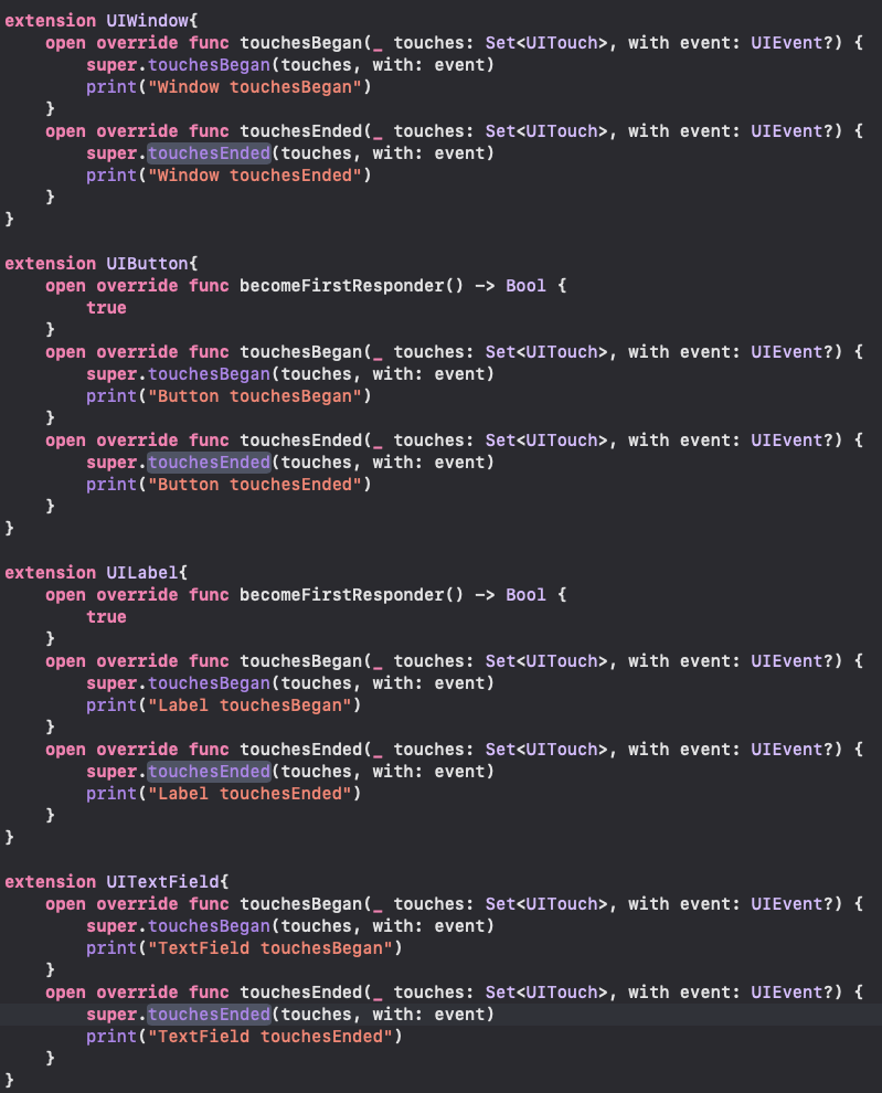 이 메소드는 SubView의 point(inside:with:)를 호출하여 View 계층을 탐색하고, 어떤 하위 VIew가 터치 이벤트를 받아야 하는지 결정한다.