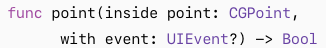 point 메소드의 파라미터는 hitTest와 같고, 반환타입만 다르다.